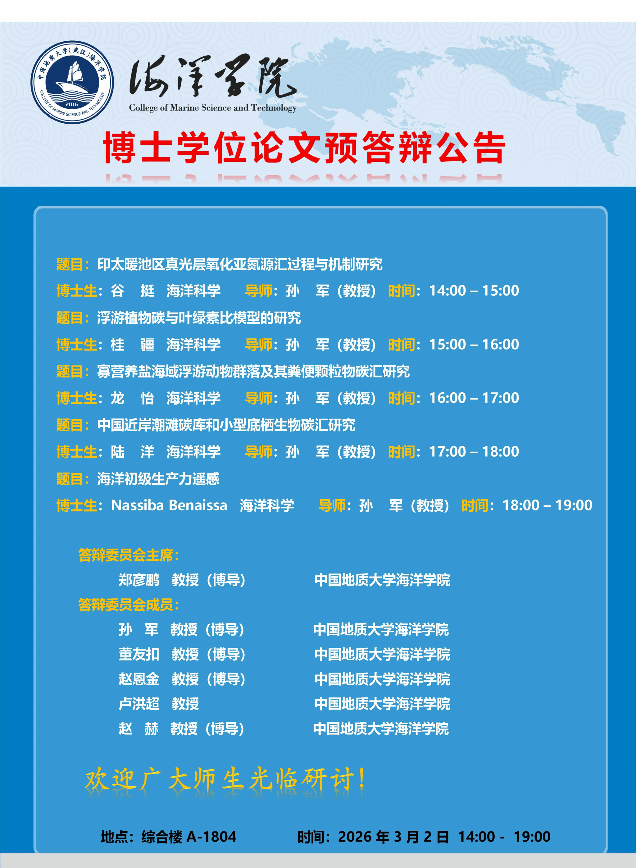 成人游戏 2026年春博士学位论文预答辩公告(3月2日)