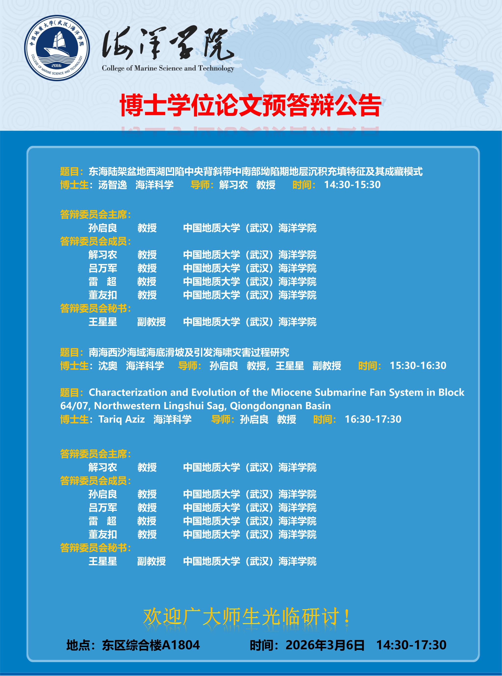 成人游戏 2026年春博士学位论文预答辩公告(汤智逸等3月6日)