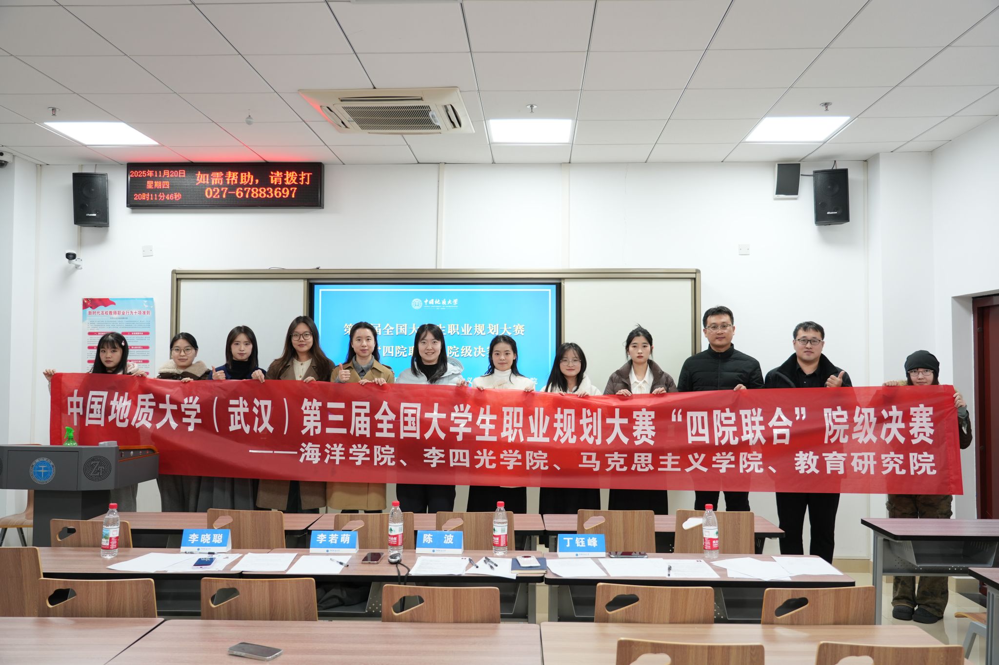 答辩期间,评委老师从展示逻辑、规划方向等不同方面给予每名同学系统指导,给同学们提出了宝贵的意见和建议。答辩结束,王俊老师和陈波老师分别作总结性发言。他们指出,本届大赛不仅是一场比赛,更是一堂生动的“未来启蒙课”。比赛的落幕是行动的开始,希望同学们能将纸面上的蓝图,转化为脚踏实地的行动,在实践中动态调整、不断精进。