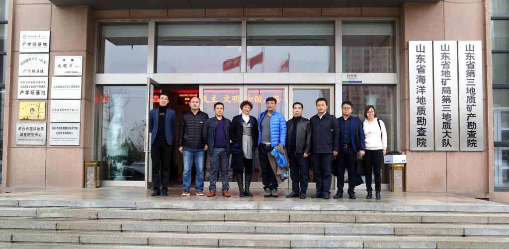 人才培养、学科建设、科研成果、学术交流等情况,表达了强化战略合作、共促海洋新发展的愿望。山东省第三地质矿产勘查院副院长戴长国介绍勘查院有关情况:该院是山东省内首家从事海洋地质的专业队伍,今年建院60周年,与学校在钻探、测绘、海洋地质等方面长期保持良好合作关系。近年来该院充分发挥山东海洋大省优势与临海亲海优势,积极投身海洋强国战略,大力开展海洋地质调查、海洋资源勘查、海上工程勘察与施工、近海大陆架钻探、海洋地质环境保护等工作,自主研发了大陆架海上钻探系列平台。与会人员围绕科研合作、人才培养、产学研基地进行深入交流;牟林院长提出“增量共赢”产学研合作模式,发挥双方优势、强强联合、主动出击,共同开拓合作新的领域和区域,实现校企双赢,共同发展。