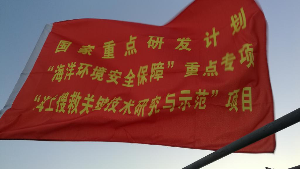 飘扬在实验船舶船头的项目旗