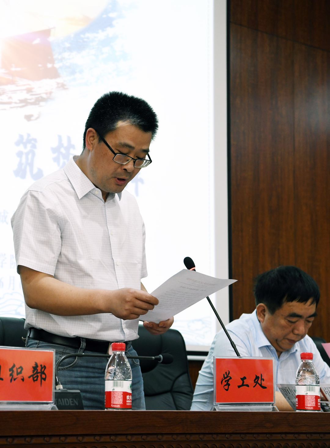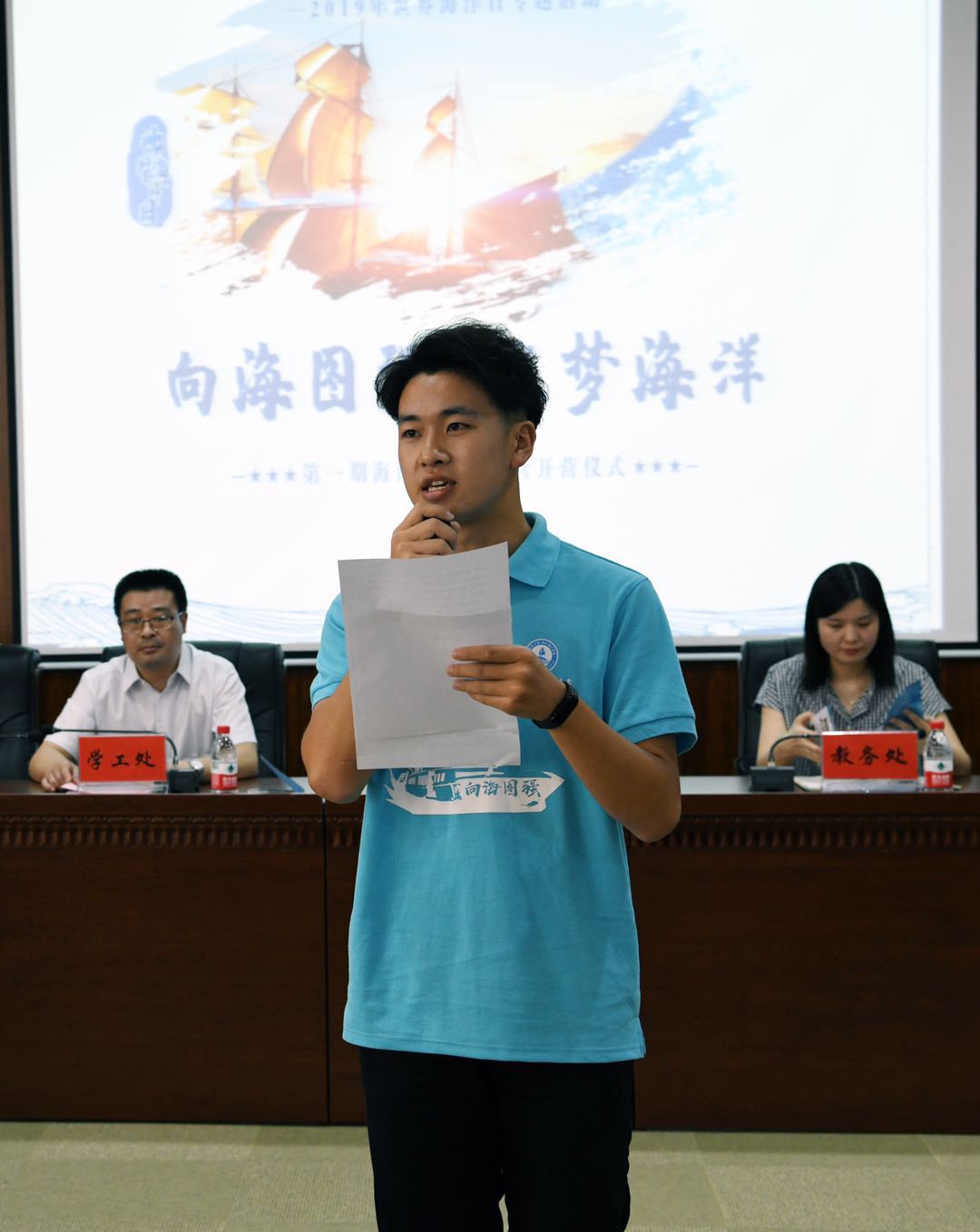 学工处处长邬海峰宣读《关于成立“海洋菁英成长营”的决定》。