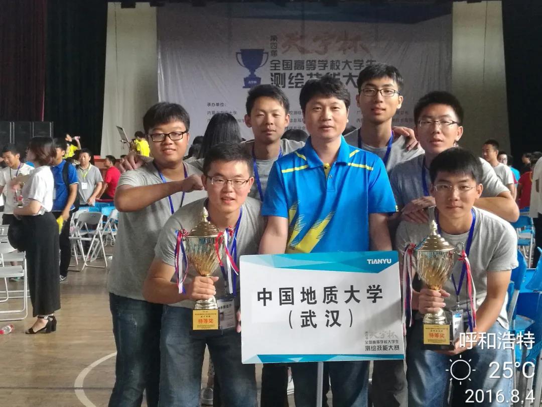 陈刚(居中)指导学生参加全国大学生测绘技能竞赛获奖