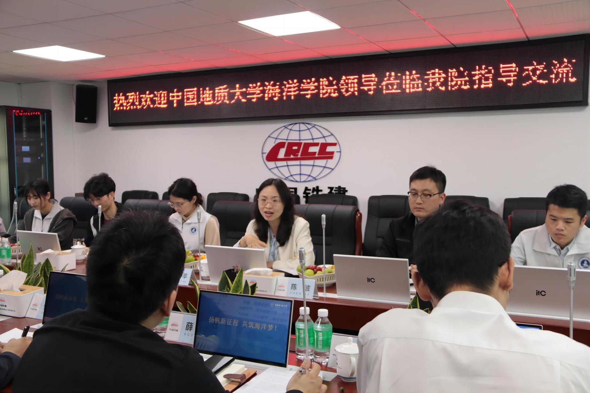党委副书记钟苹、团委书记陈波携8名优秀学生代表赴中国铁建港航局勘察设计院开展访企拓岗。中铁建港航局集团勘察设计院执行董事、总经理、党委副书记张迎春,党委书记、副院长刘美华,副院长薛威,勘测事业部经理汪坤,人力资源部经理戎晓丽和在企地大校友代表刘文珍参会交流。