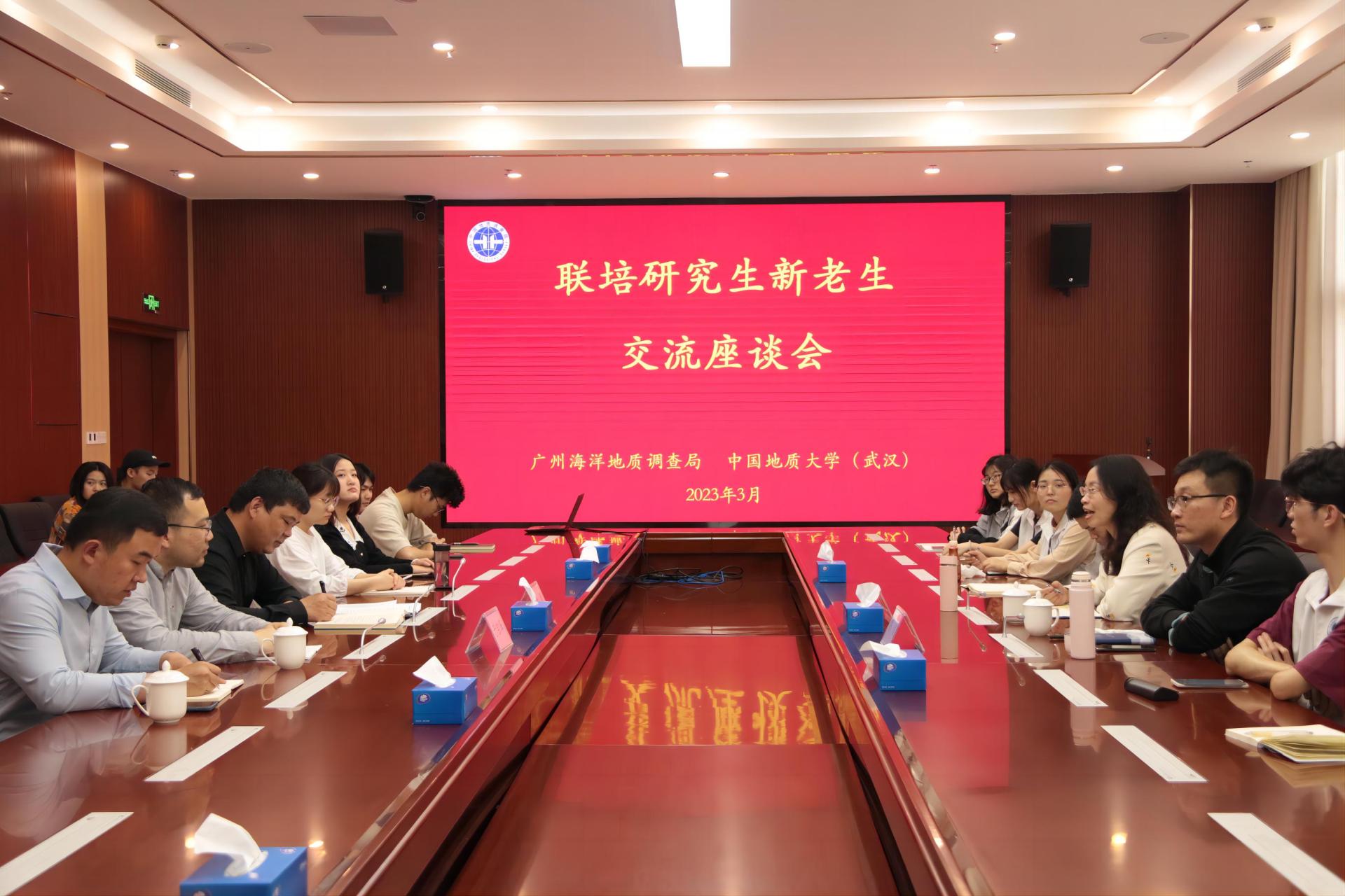 党委副书记钟苹、团委书记陈波携8名优秀学生前往广州海洋地质调查局开展访企拓岗并举行联培学生新老生交流会。广州海洋地质调查局人事教育处处长宋求精、人事教育处副处长唐颖、人事教育处许坤、海洋技术方法研究所业务室主任于宗泽参会交流。
