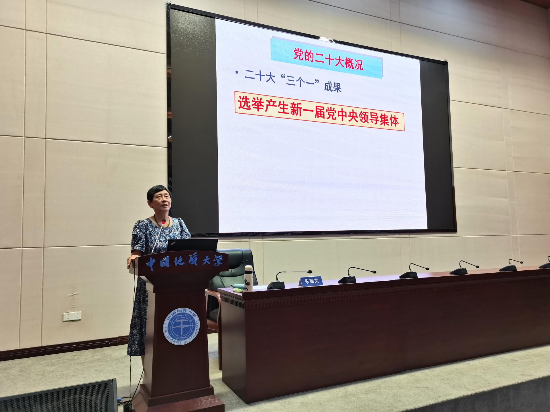 朱勤文教授以“学习贯彻党的二十大精神——从严治党落到高校学生党建”为题,带领大家回顾了党的二十大报告主体内容,重点比对分析了“十九大”与“二十大”主题内涵的异同,深入剖析了“中国式现代化”的科学内涵及本质要求,深刻阐述了党的二十大的历史地位与重大意义。朱勤文教授重点解读了“全面从严治党”的内涵。她表示,考验与危险长期存在,我党要始终坚持人民民主监督和自我革命,跳出治乱兴衰的历史周期率,时刻保持解决大党独有难题的清醒和坚定。