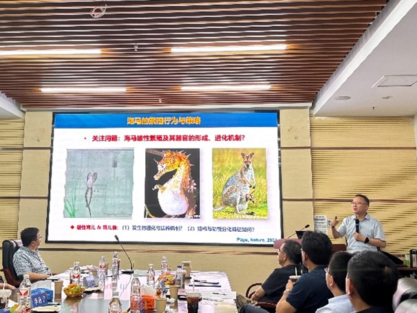 中国科成人游戏南海海洋研究所林强研究员应邀作《印-太海龙科鱼类适应辐射与性状演化》报告。林强研究员从生命起源引入他的报告,表明了印-太海域是全球海洋生物多样性中心、但不一定是种化中心的观点,提出了海洋物种多样性形成机制、扩散与适应辐射模式等问题。随后,林强研究员以海龙科鱼类为例,讲述了其多样性的形成、演化和遗传机理,分别从印-太海域向西到印度洋海域,向南到南澳海域,向北到中国沿海区域进行了海龙科生物的外形和生态适应性的讲解,同时分析了海龙科鱼类伴随生态位分化产生的本地适应性。