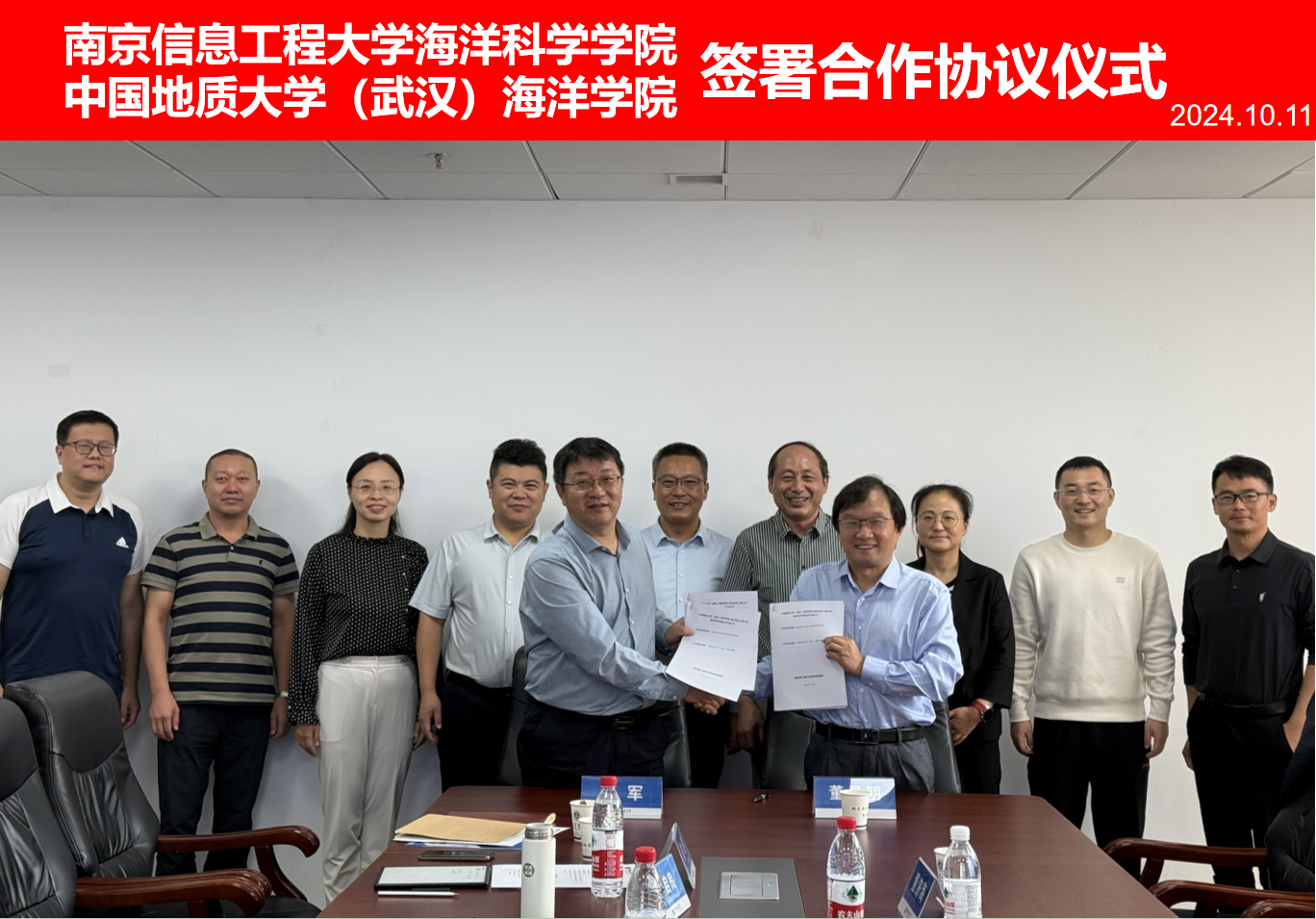 10月11日上午,南京信息工程大学海洋科学成人游戏董昌明院长带队一行到成人游戏开展调研交流,双方签署合作协议。孙军院长主持调研座谈会,院班子成员和系主任参加签署合作协议仪式。