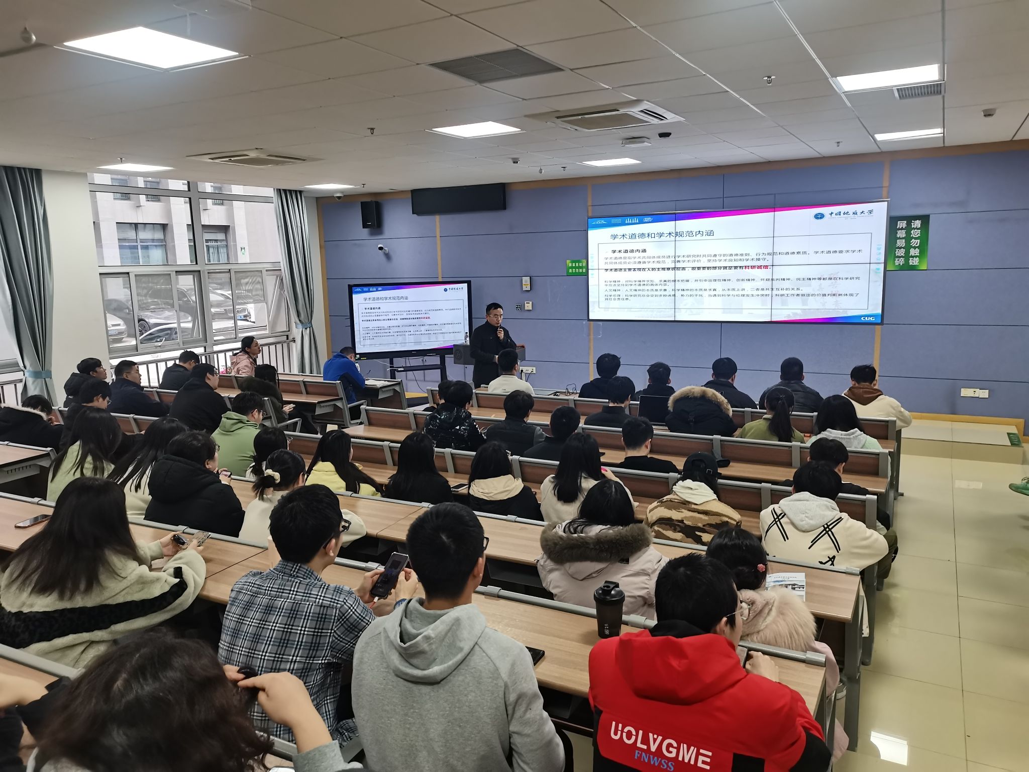 陈亮老师作《科学道德与学术规范教育》主题讲座。他向学生们精炼地阐述了学术道德和学术规范的重要性。他指出,学术诚信是研究生培养的基本要求,也是未来职业生涯的基石,同学们要牢记实验研究的规范准则。陈老师通过列举学术造假案例,警示学生们时刻要保持清醒的头脑,坚守学术规范,杜绝任何形式的学术造假和抄袭行为。同时,他强调“一稿多发”,和“不当署名”是同学们最容易忽视却常犯的学术不端,需要引起高度重视。