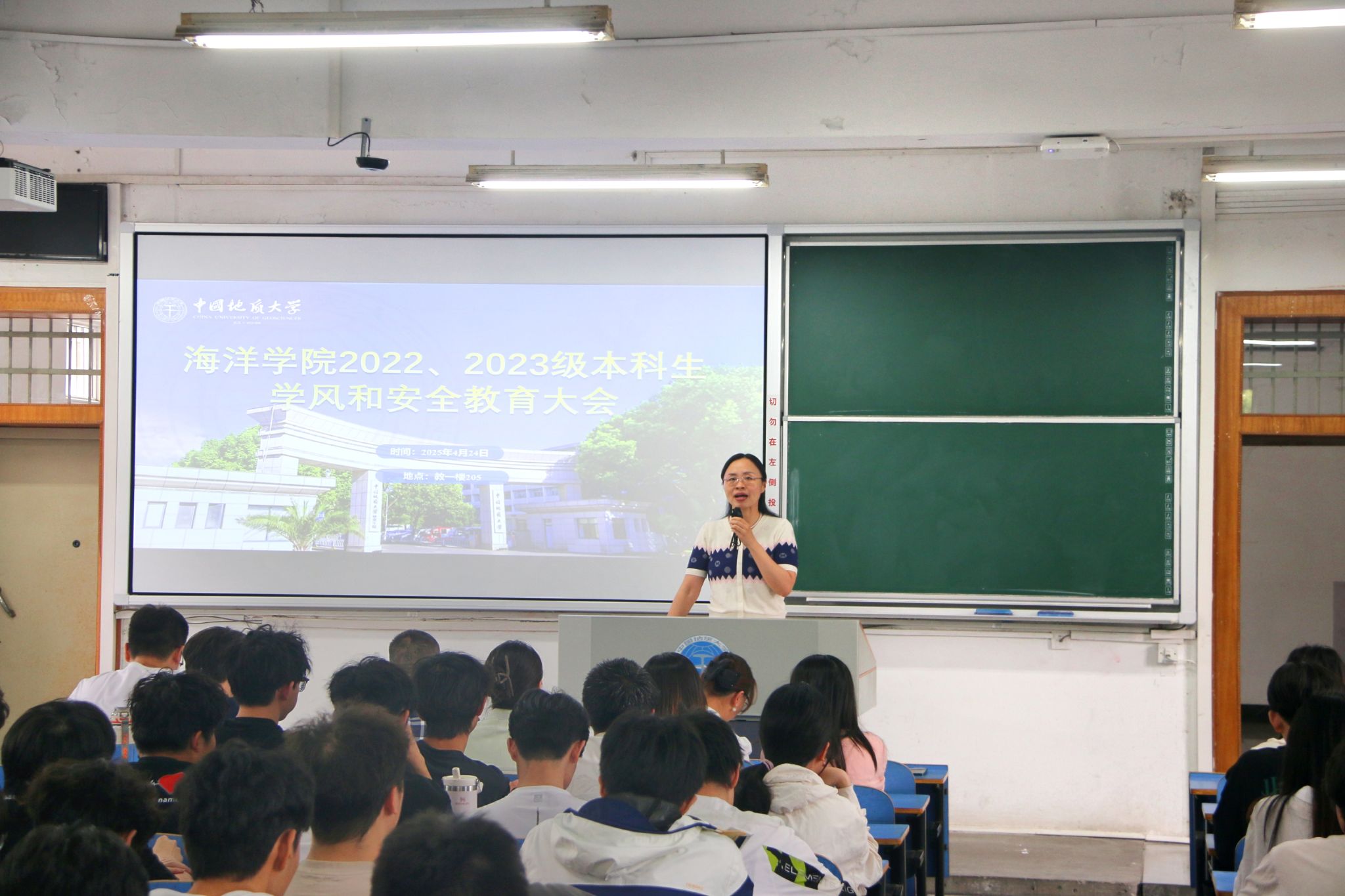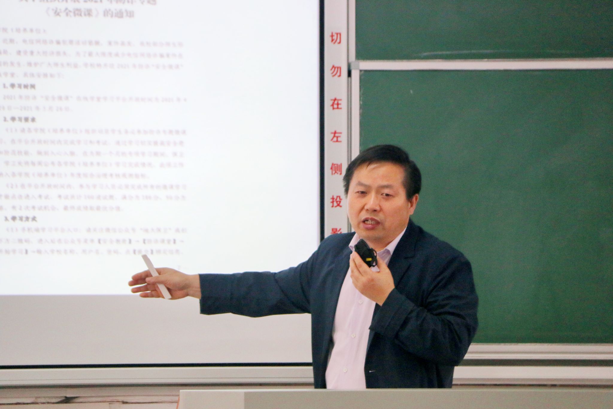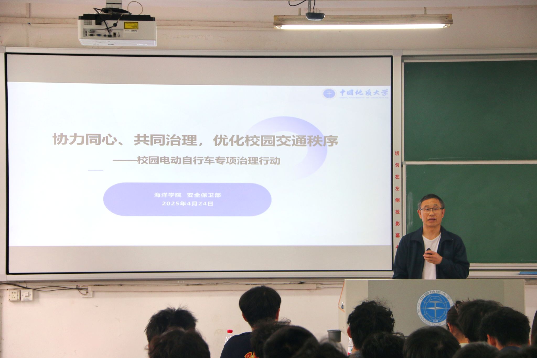 安全保卫部副部长郭敬印针为同学们作《协心同力、共同治理,优化校园交通秩序》主题报告,郭部长从学校实例出发,陈述了对安全驾驶和使用电动车的重要性,对校园电动自行车的专项治理进行了讲解,呼吁同们加强安全意识,积极配合学校管理,共同营造安全的校园交通环境。安全保卫部魏景明老师通过列举诈骗类型及常见套路,向同学们传授了防骗宝典,提醒广大同学提高警惕,增强防范意识,保护好个人财产安全。