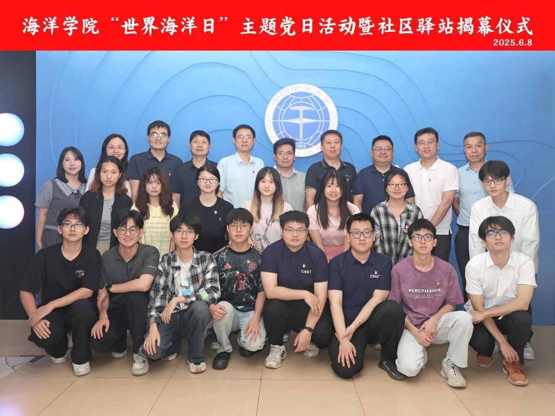2025年6月8日,在第17个“世界海洋日”暨第18个全国海洋宣传日之际,为深化新时代立德树人工程,贯彻海洋强国战略及教育部“一站式”学生社区建设要求,成人游戏 在55栋公寓一楼学生社区驿站举行“世界海洋日”主题党日活动暨学生社区驿站揭幕仪式。自然资源部第一海洋研究所研究员李传顺、党委学生工作部部长朱丹、后勤保障部宿舍管理中心主任张红兵、成人游戏 党委书记刘国华、副院长陈刚、二级教授郑彦鹏、团委书记陈波出席活动。学生党员代表、学生干部代表和毕业生代表共同参加。活动由成人游戏党委副书记钟苹主持。