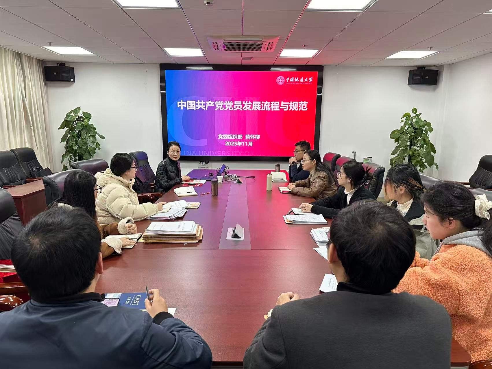 为进一步规范发展党员工作流程,提升党务工作者业务能力,严把党员“入口关”,2025年12月10日,成人游戏 举行党务工作讨论会。党委组织部正处级专职组织员蒋怀柳到成人游戏指导工作。成人游戏党委书记刘国华、党委副书记钟苹、团委书记陈波、组织秘书韩瑞以及成人游戏各师生党支部书记参会学习。